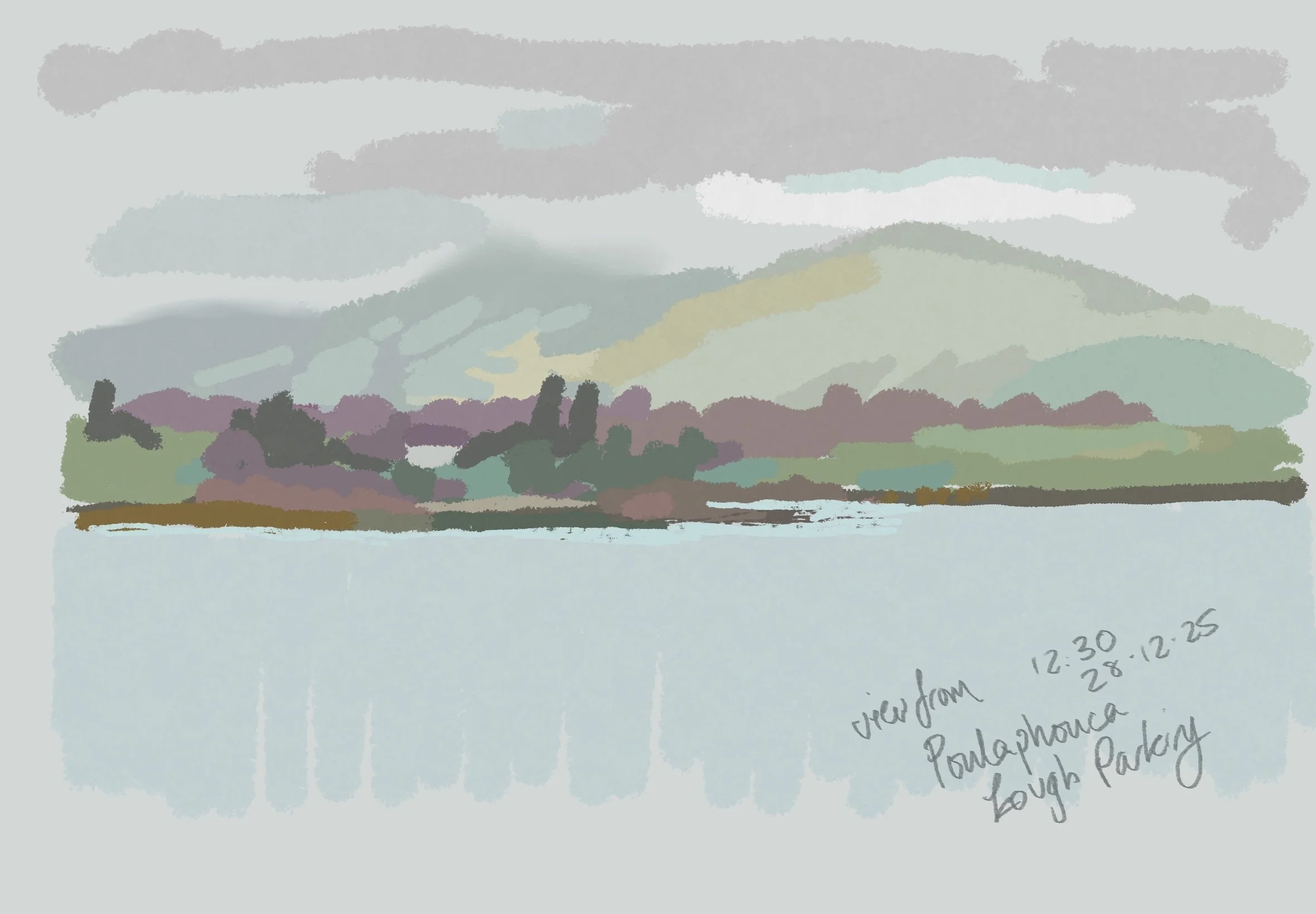 No painting has happened apart from the digital ones. Before heading home I went back to the poulaphouca car park for another couple of digital sketches of changing light including a ‘nocturne’ (mind you it’s only 16:45)