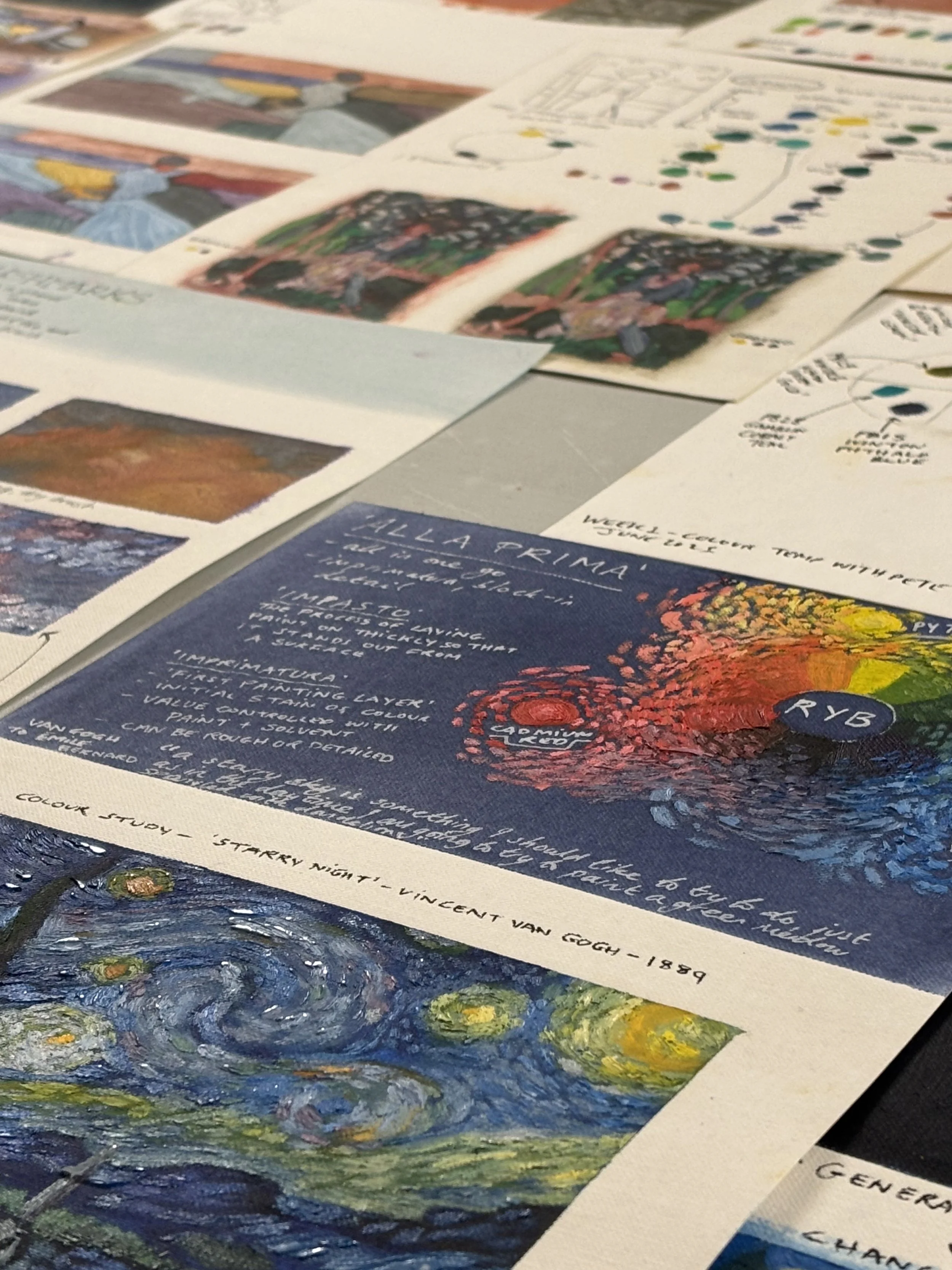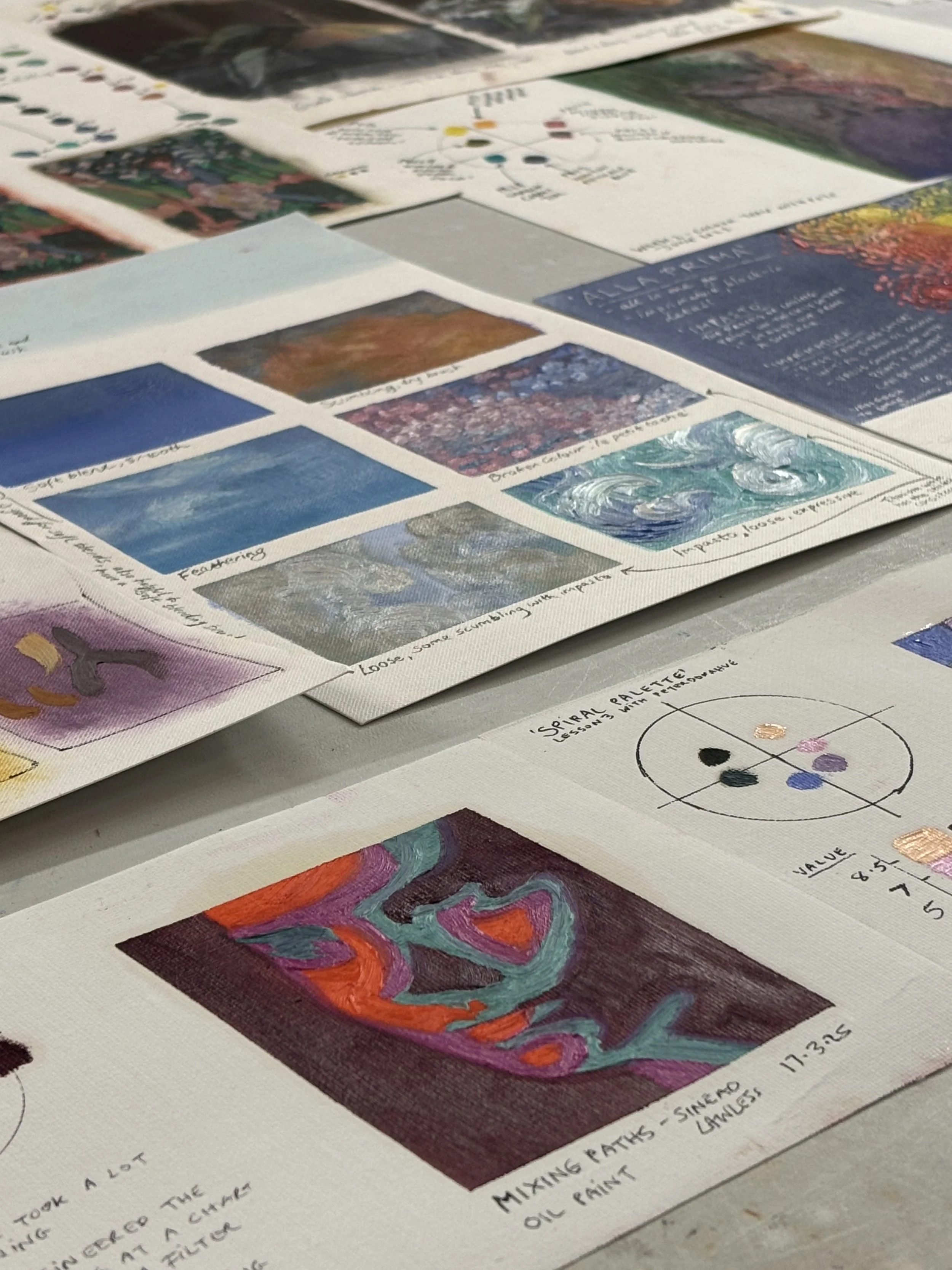 I don’t work with these particular colours often and the chart is giving me a way to get used to how they behave and interact.