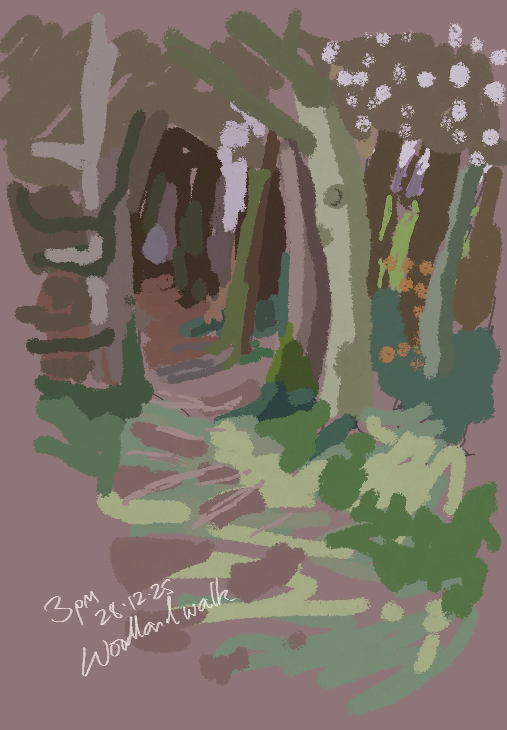 As I approached the wood I had to stop and capture some of the muted purples and greens. It strikes me that we have a lot of turquoise/teal in these landscapes too. Although you have to watch the chroma if you want to keep it real.