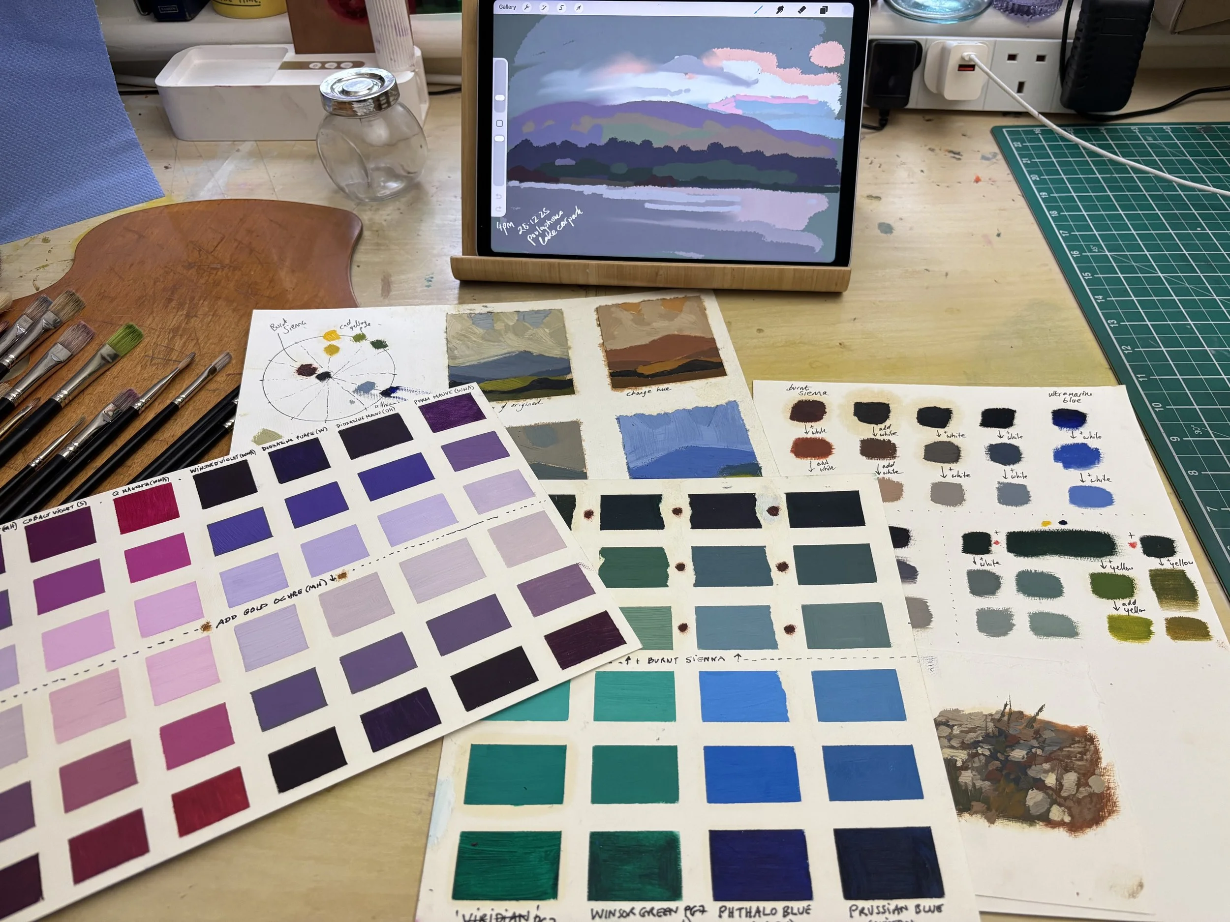 I then need a break. I clean off my palette before I start the colour studies.