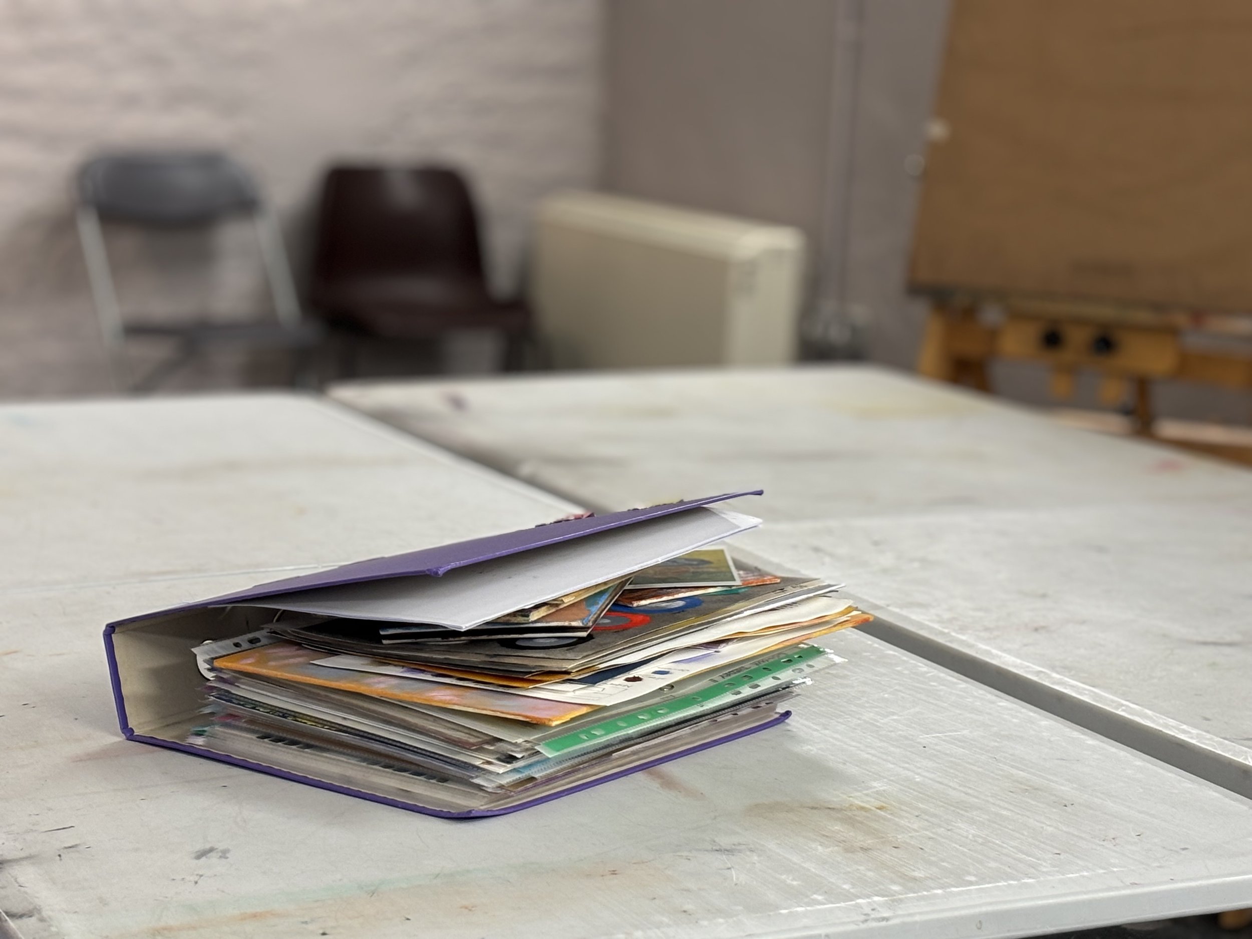 3 years work crammed into a purple binder. My work, much like my body, could use a stretch.